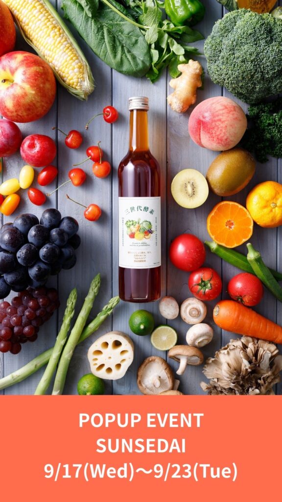 当社の人気商品 「三世代酵素」 を実際に手に取っていただけるほか、気になるお客様のために、試飲もご用意しました🍎🍇🥬