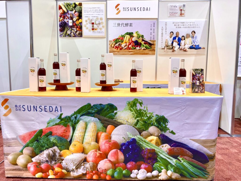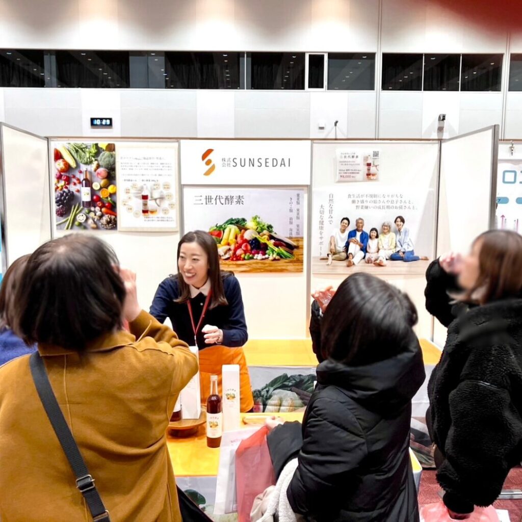 SUNSEDAIのブースにもたくさんの方がお越しくださり、三世代酵素の試飲をしていただきました。